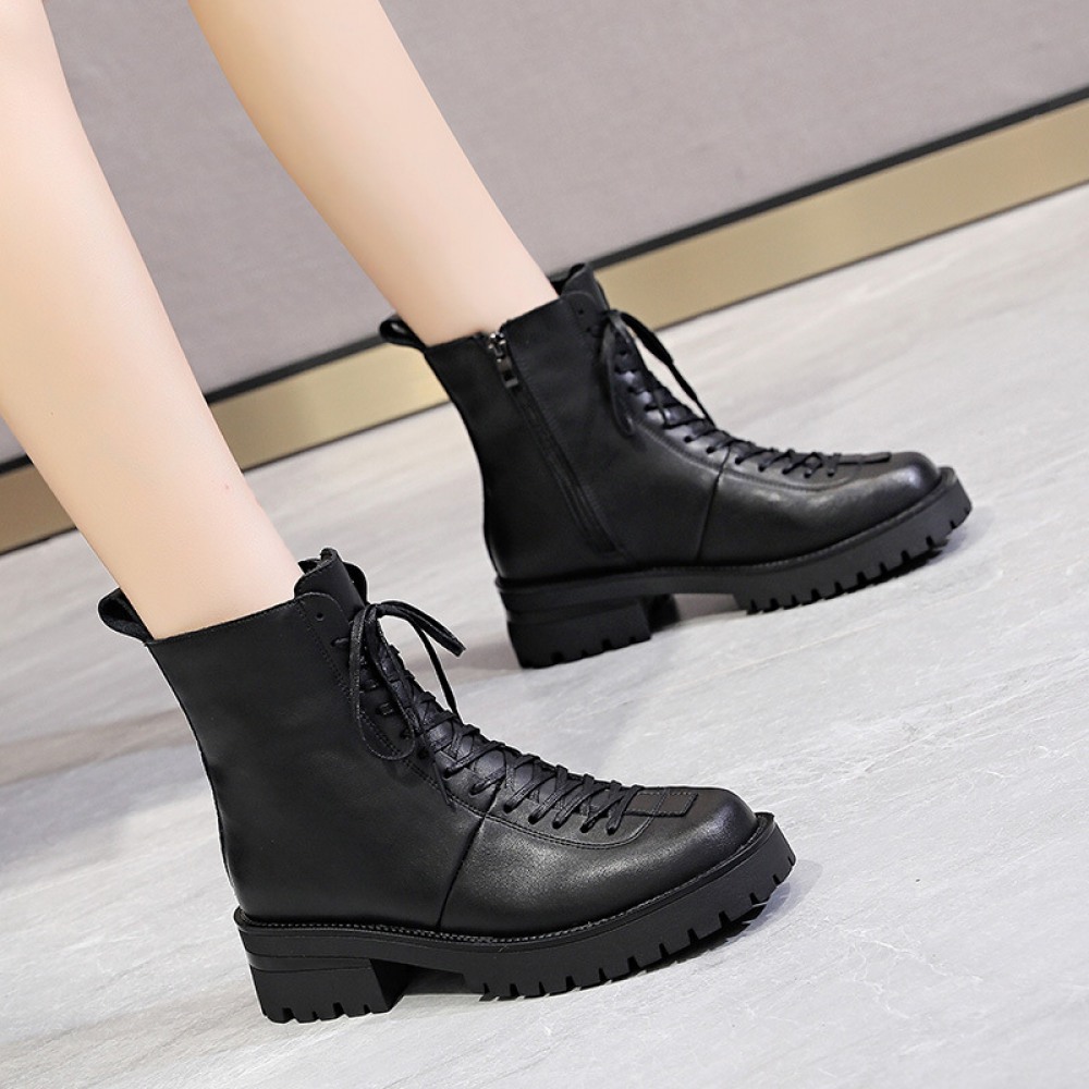 Women's Martin Boots Thick-Soled Female Spring And Autumn Thick Heel Short Boots